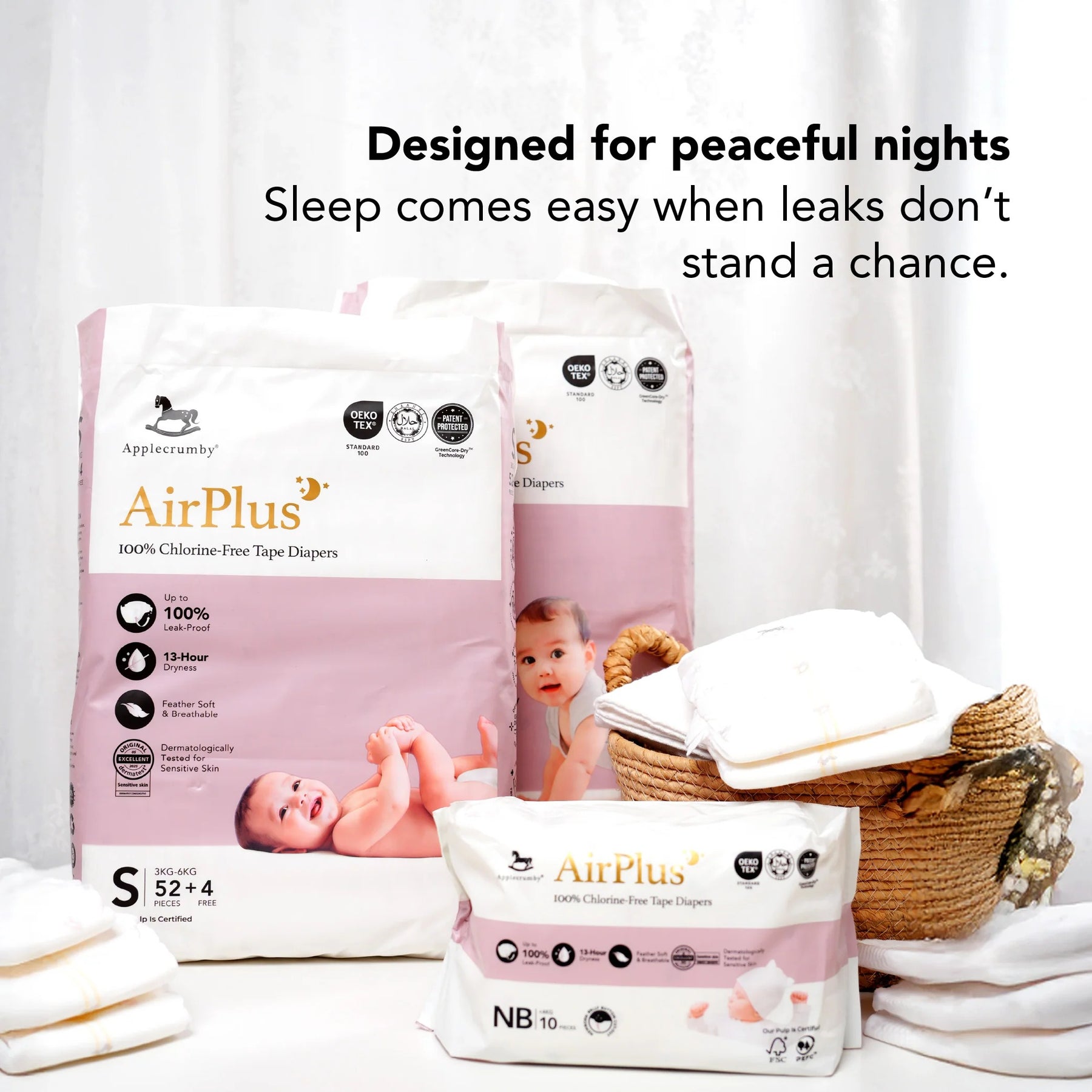AirPlus Diapers — All-night dryness, breathable comfort, and gentle care for restful sleep.