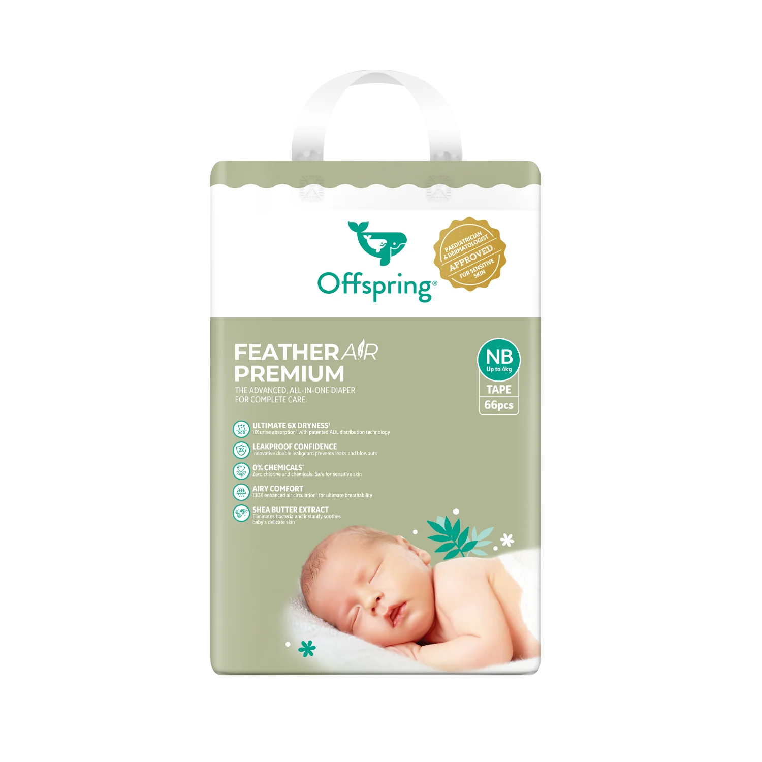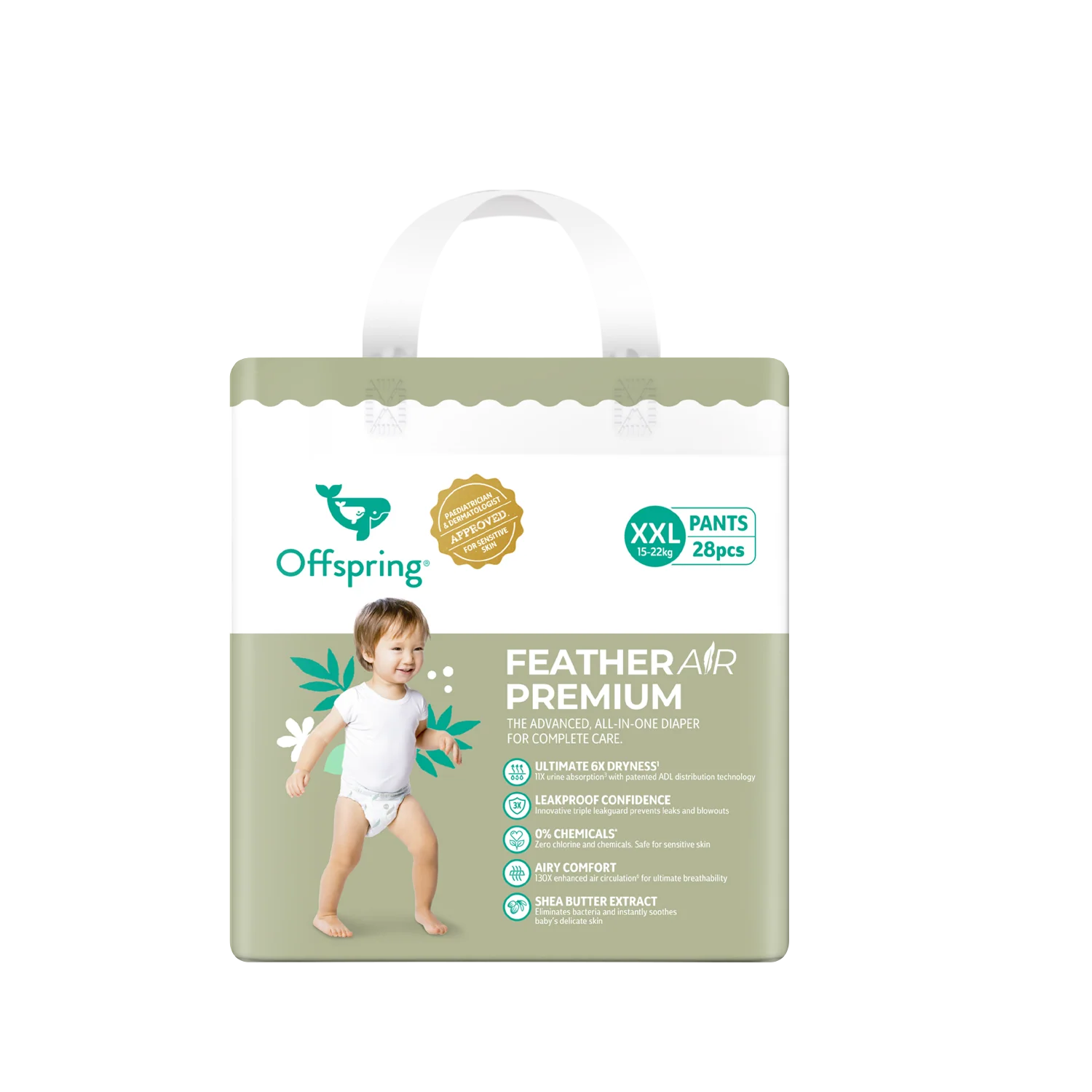 Experience ultimate comfort, breathability, and protection with the Offspring FeatherAir™ Premium Diapers — thoughtfully designed to keep your little one dry, comfortable, and happy all day long. Made using ultra-light, cloud-soft materials, these premium diapers offer superior absorbency without the bulk, making them perfect for active babies and sensitive newborn skin.