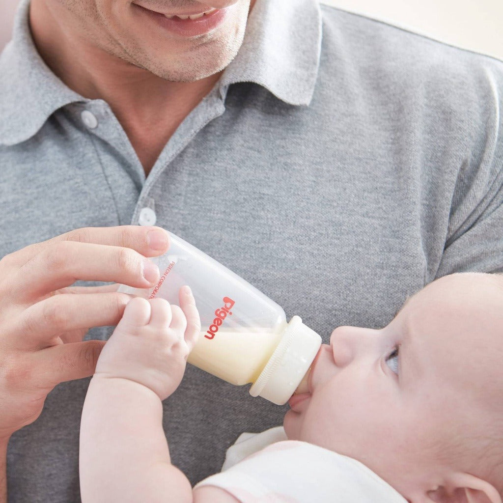 Pigeon Slim Neck Nursing Bottle with Peristaltic Nipple is designed to support natural feeding with a comfortable bottle shape and soft silicone nipple. The bottle helps babies maintain a natural sucking rhythm while making feeding easier for parents.