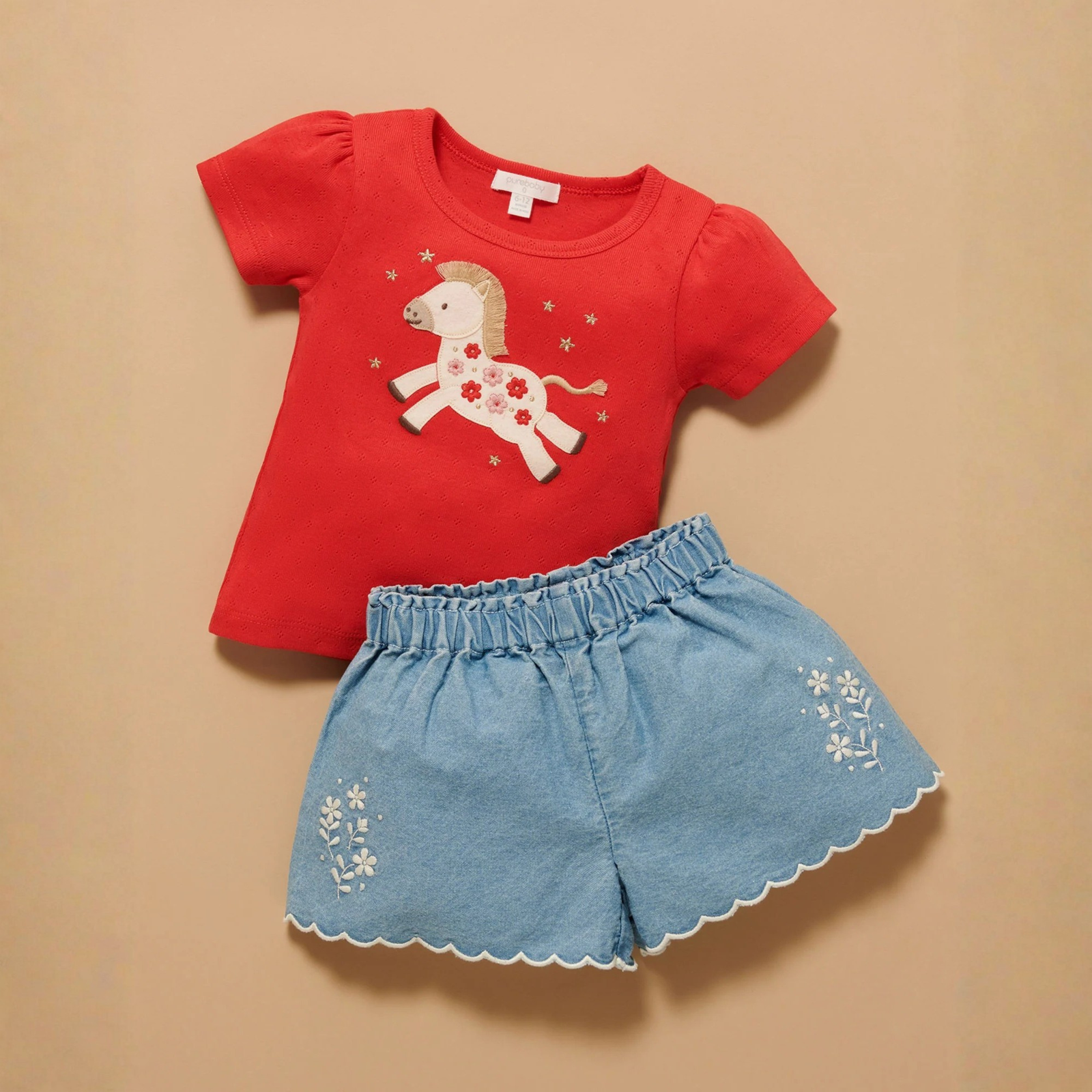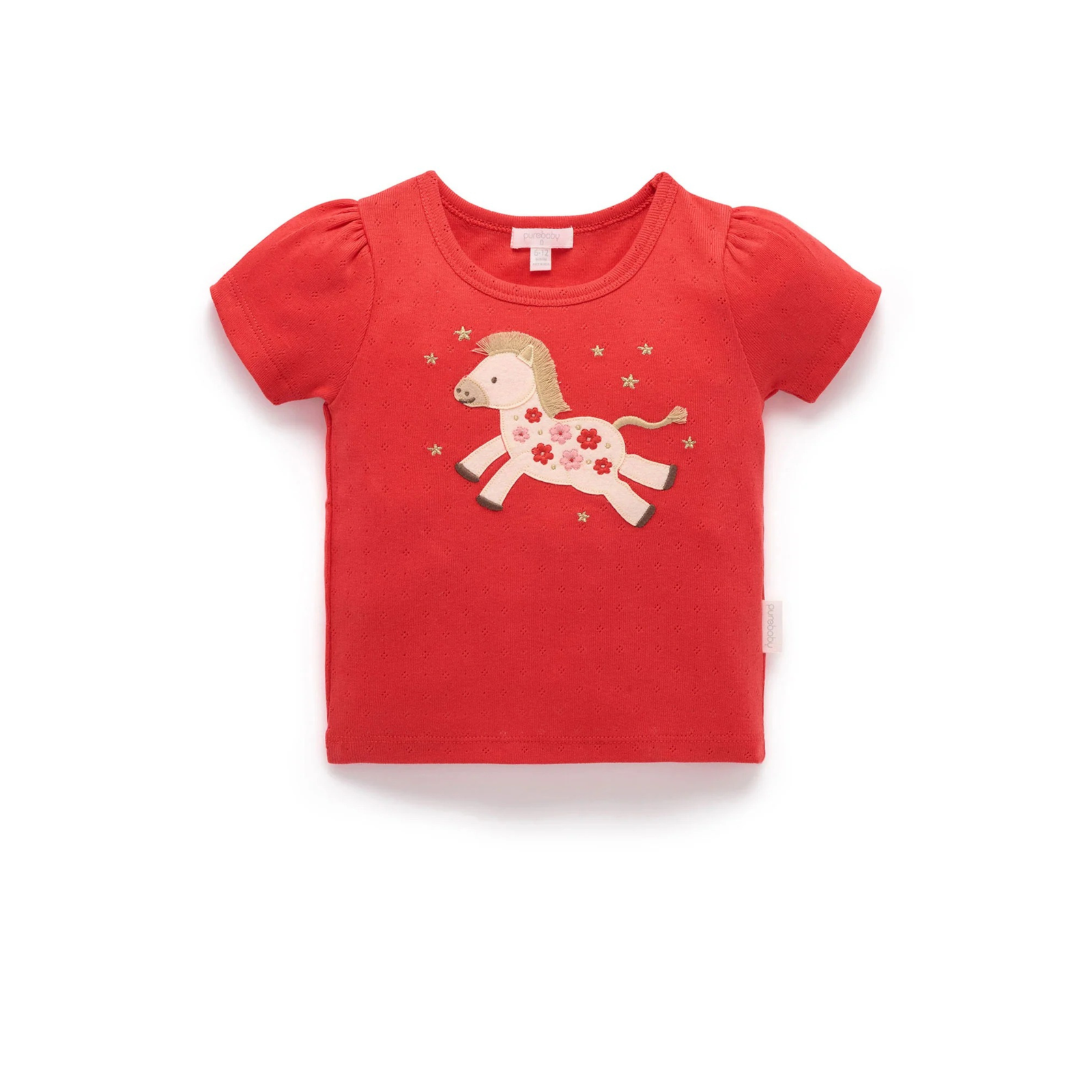 Purebaby Luna Red Print Leaping Horse Organic Tee
