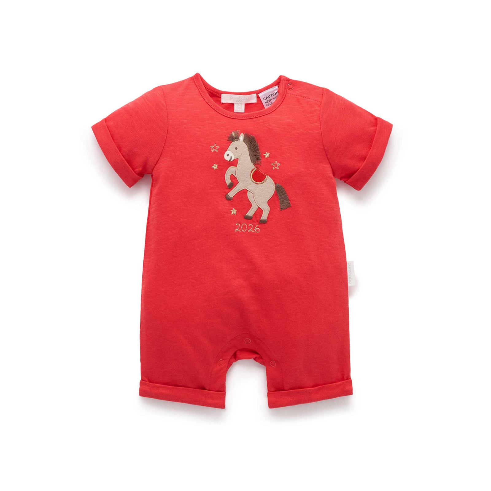Purebaby Luna Red Print Little Horse Organic Growsuit