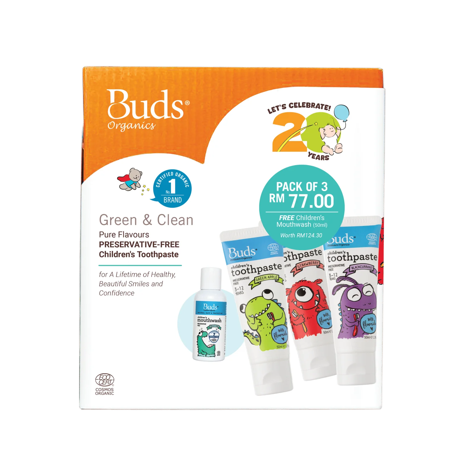 Buds Organic BOO Children's Toothpaste 50ml Buy 2 get 1 Free (Xylitol) + Free Mouthwash 50ml