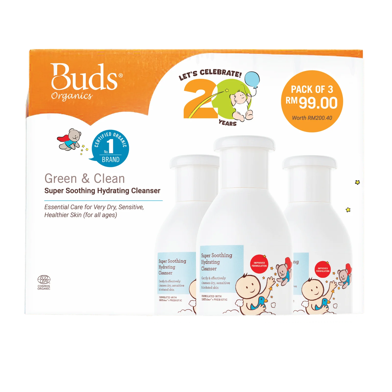 Buds Organic BSO Super Soothing Hydrating Cleanser 225ml x 2 + Free 1 SSHC 225ml