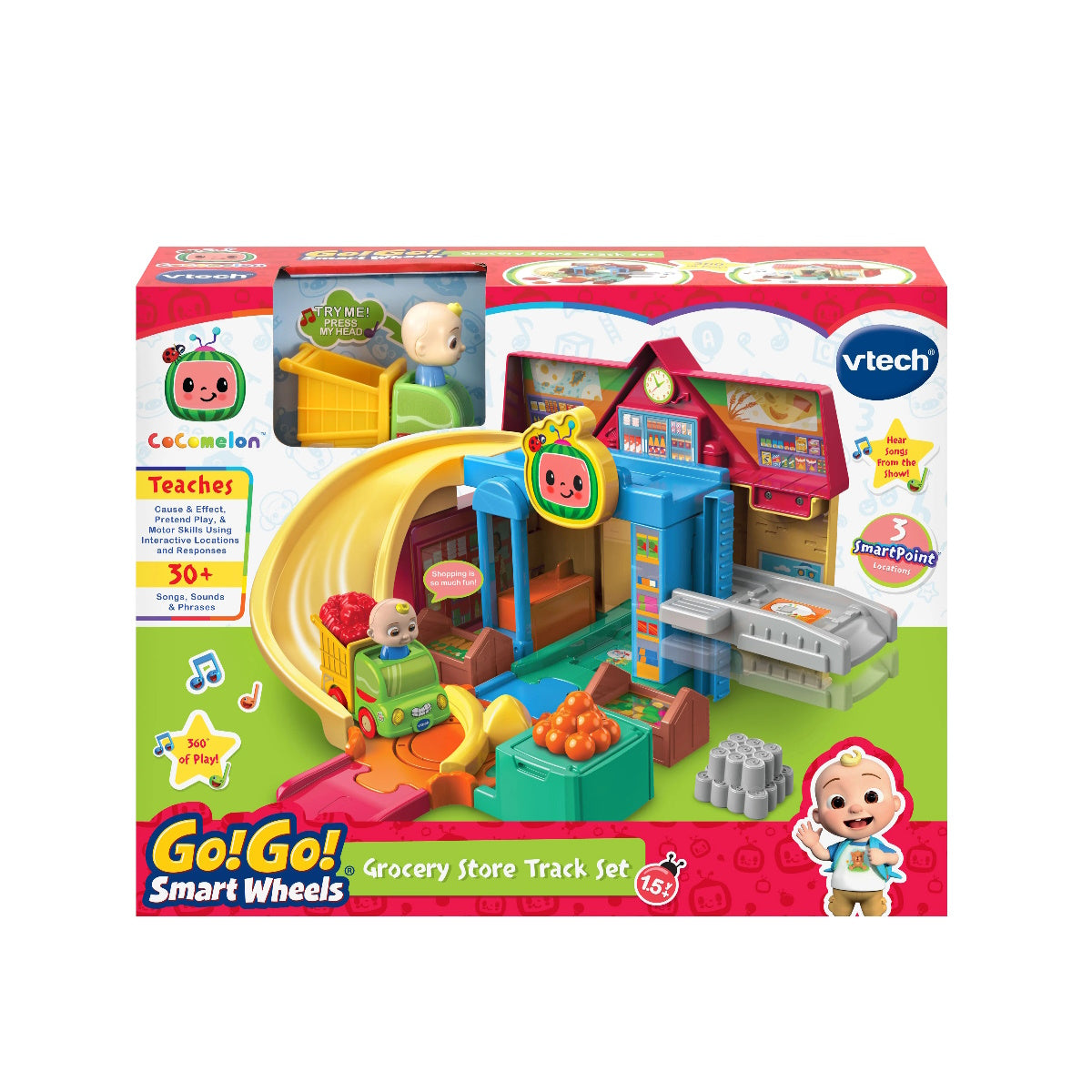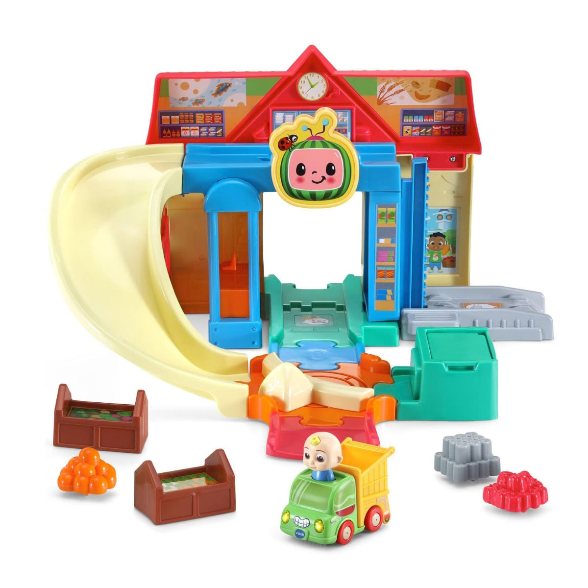 VTech Go-Go Smart Wheel Cocomelon Cart Racers Grocery Store Track Set