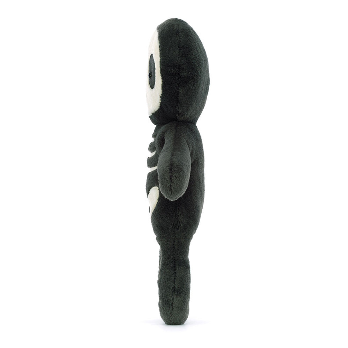 Parading out of the haunted house, it's affable Skeleton Bob! Softy Bob has liquorice fur with lots of fuzzy bones. His suedette eyes have embroidered edges and tiny, shiny pupils. This cheery skeleton's clacking along, with nobody to stop him!