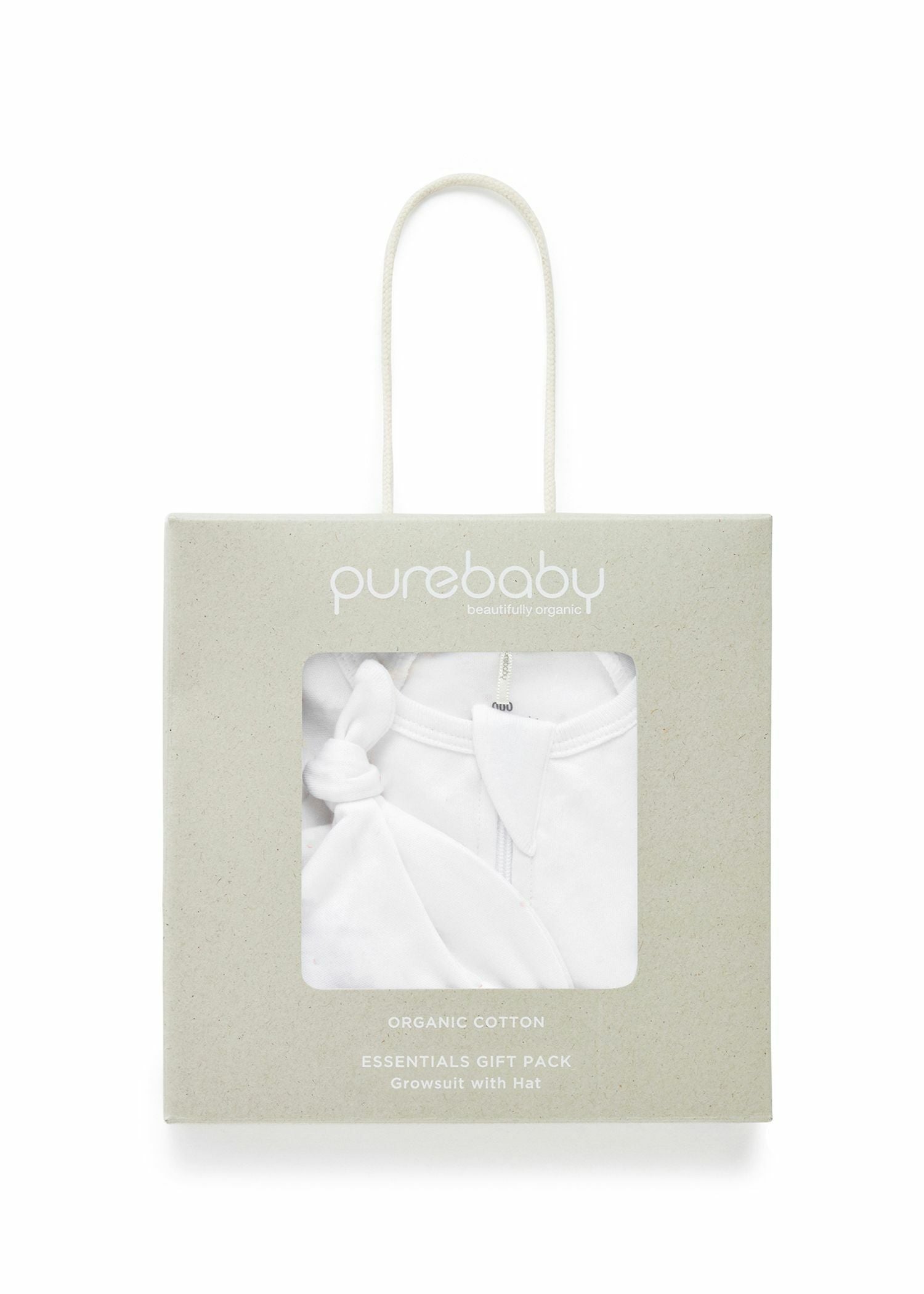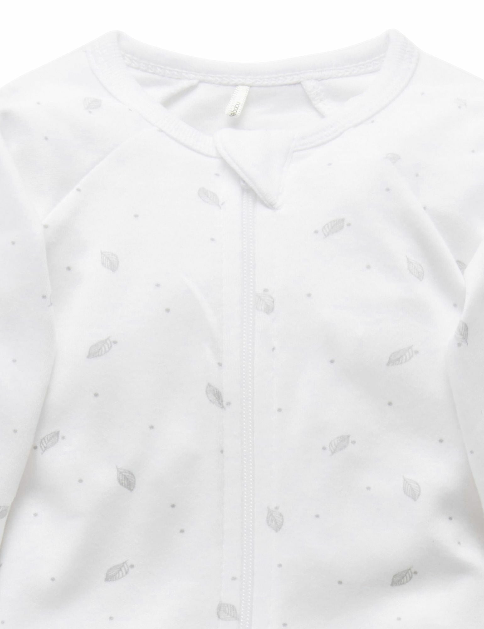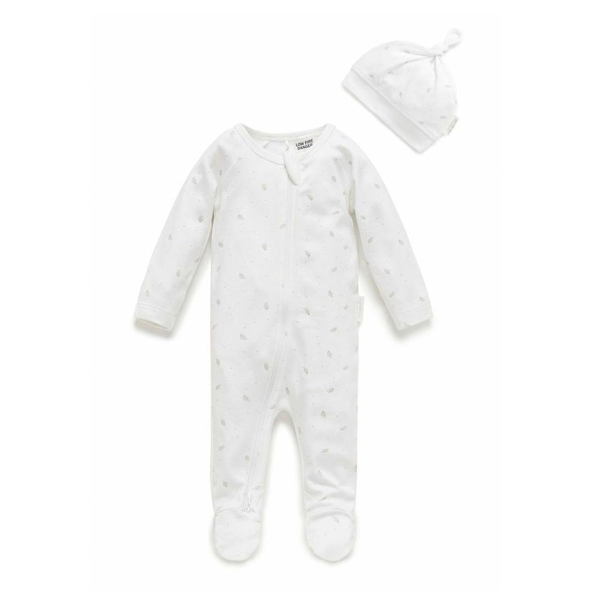 Purebaby Australia Zip Growsuit & Hat Pack- Pale Grey Leaf
