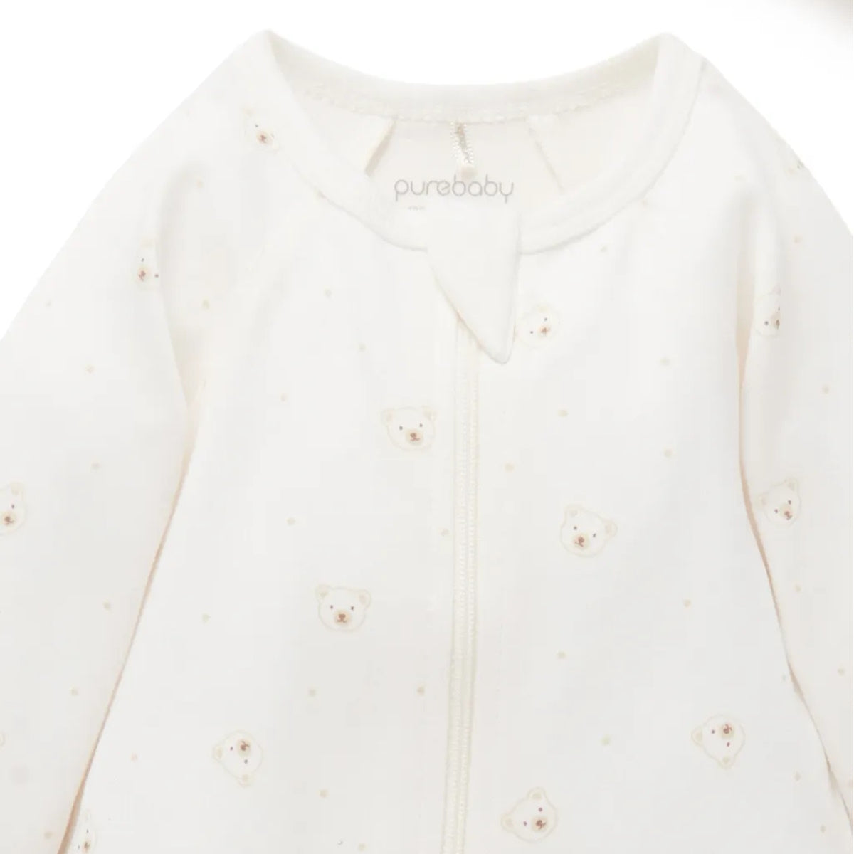 Pakej Baju Terusan Berzip & Topi Organik Purebaby Australia - Vanilla Bear