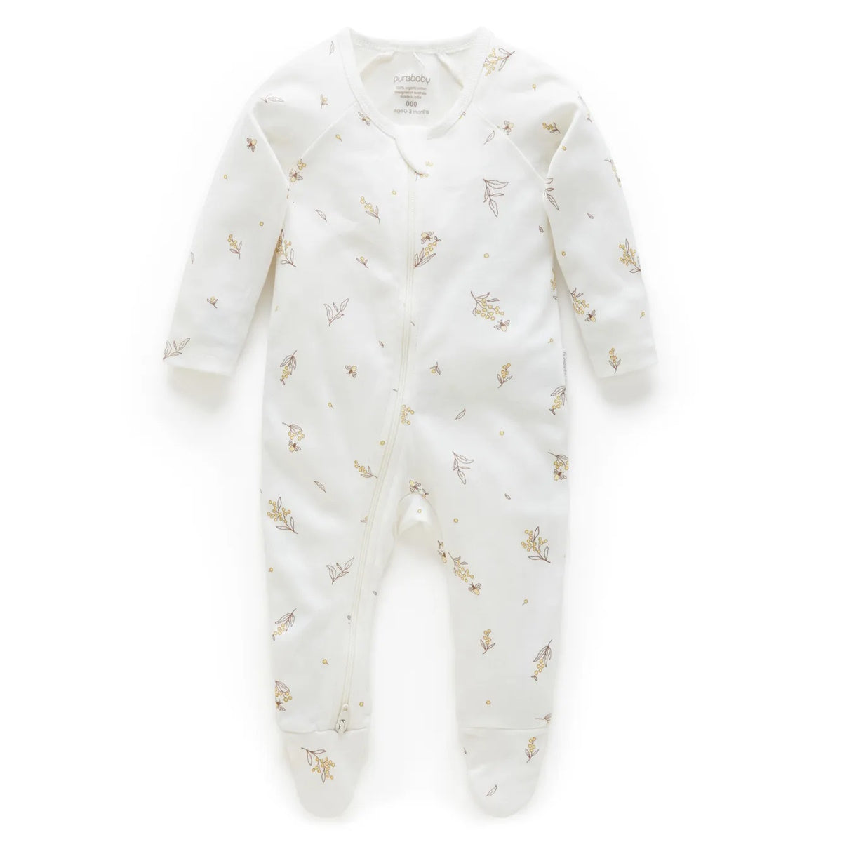 Organic Zip Growsuit Purebaby Australia - Vanilla Wattle Bee