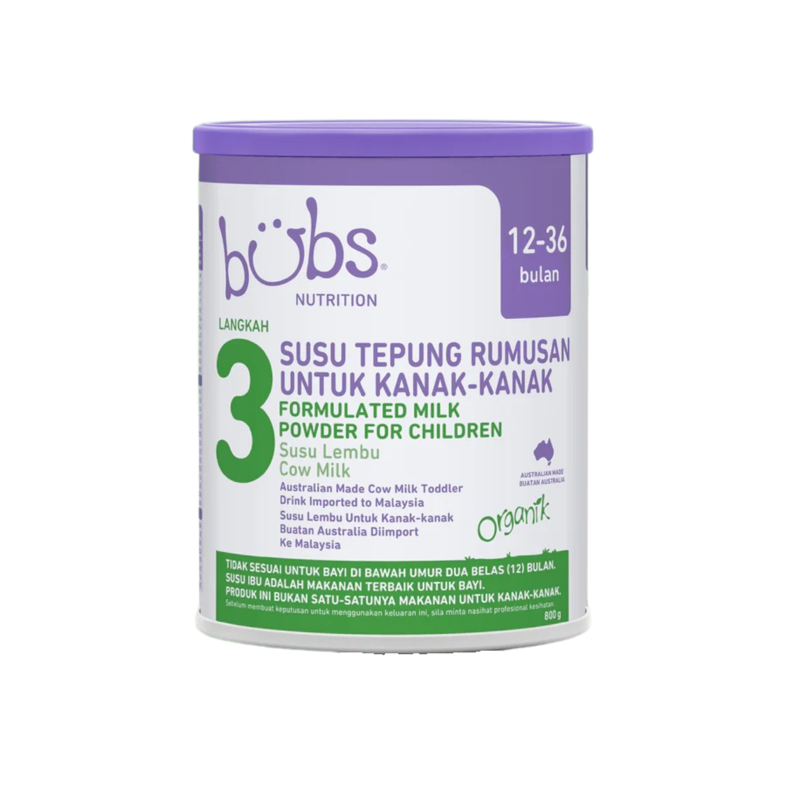 Bubs Organic Grass Fed Cow Toddler Milk Stage 3, 800g (12M-18M) - Cow's milk formula