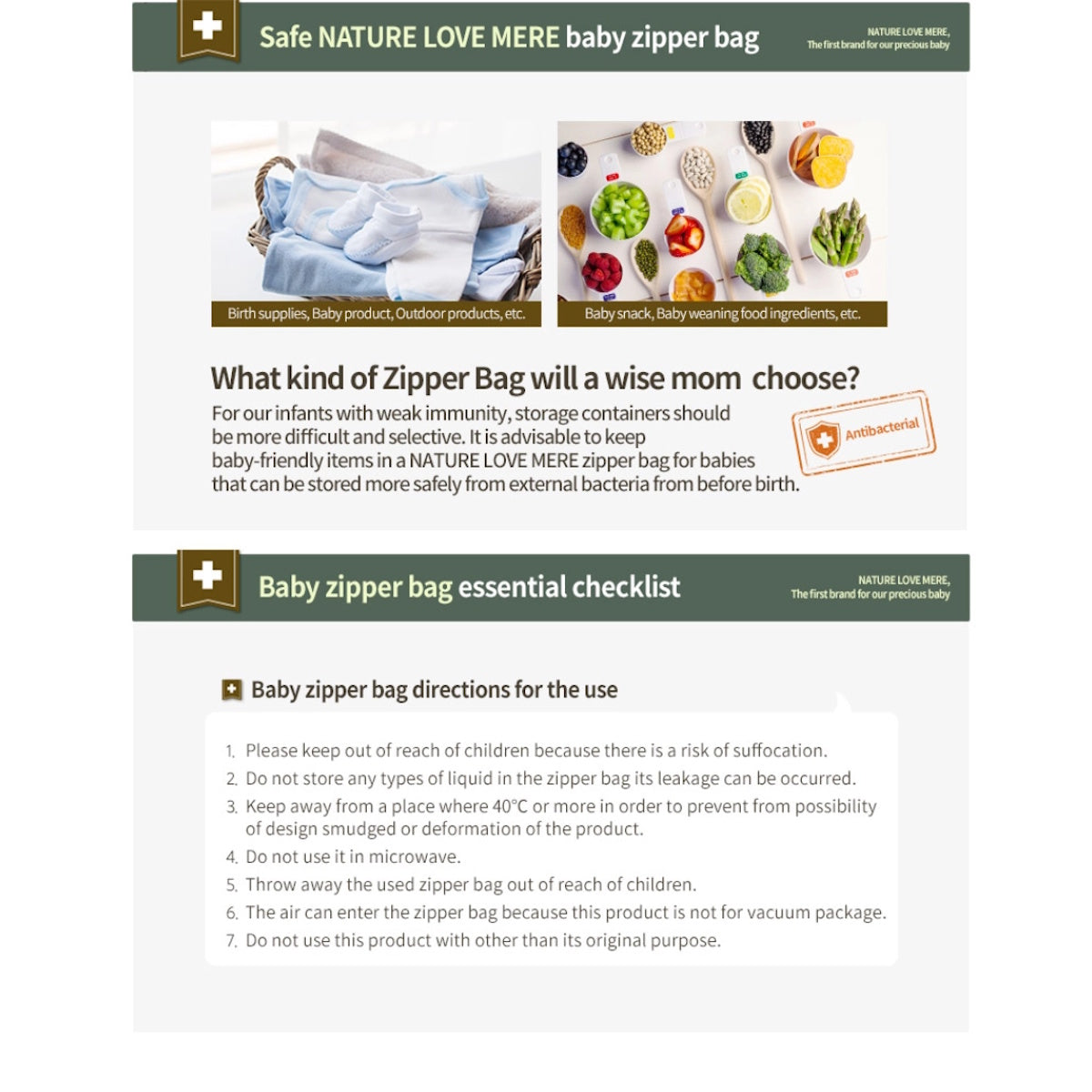 The Nature Love Mere Baby Zipper Bag is the perfect solution for parents who want clean, organised, and convenient storage for daily essentials. Made with thick antibacterial vinyl material, these zipper bags keep your baby items protected, hygienic, and easy to access—even when you're on the go.