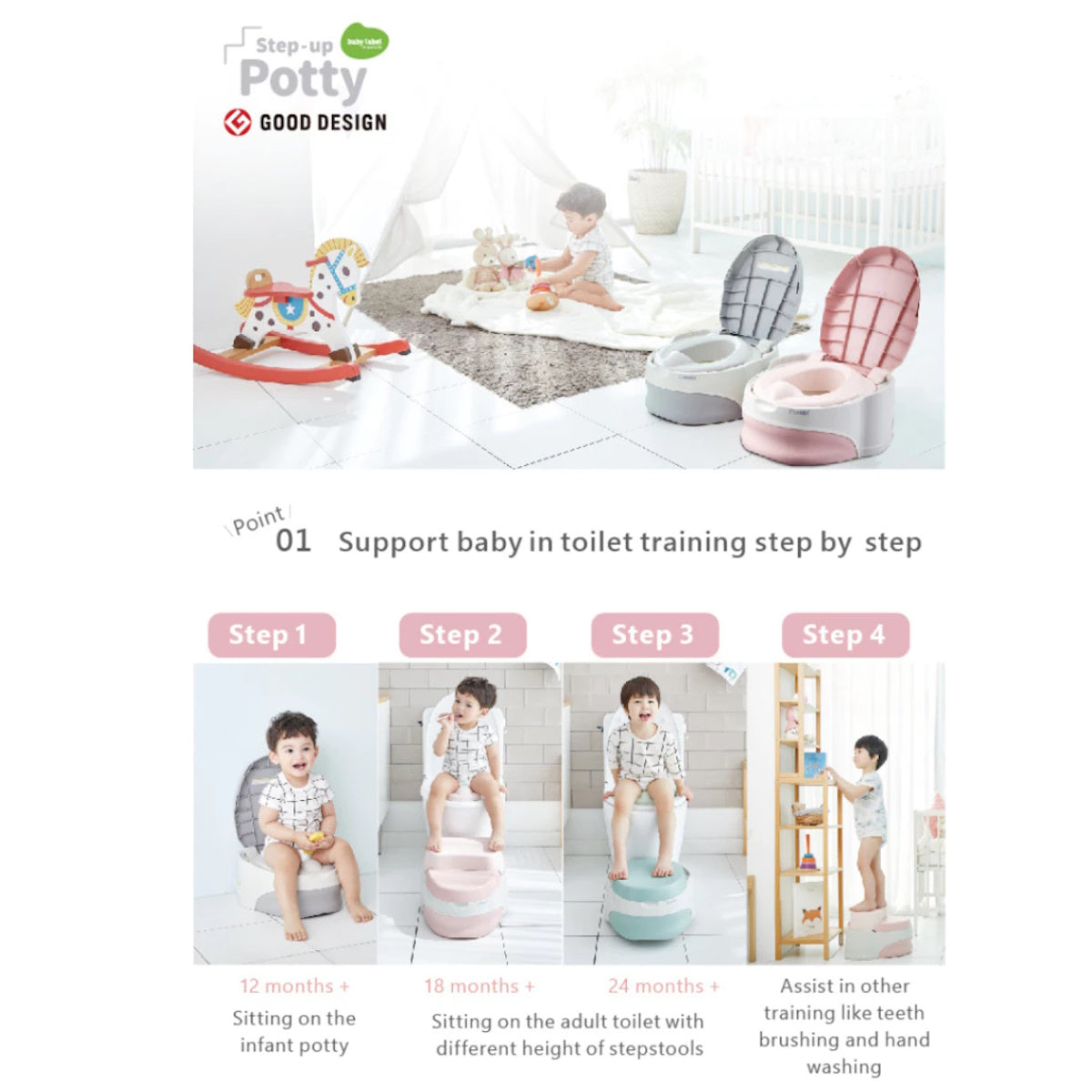 Make potty training easy, safe, and confidence-building with the Combi Baby Label Step Up Potty!