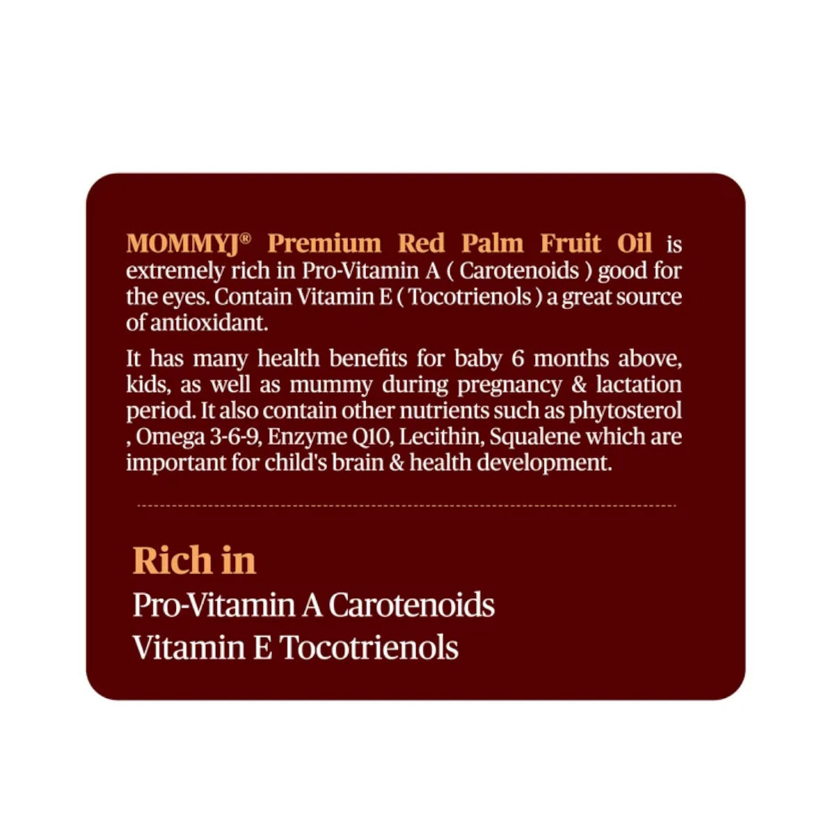 Give your little one a healthy start with MommyJ® Extra Red Palm Fruit Oil!