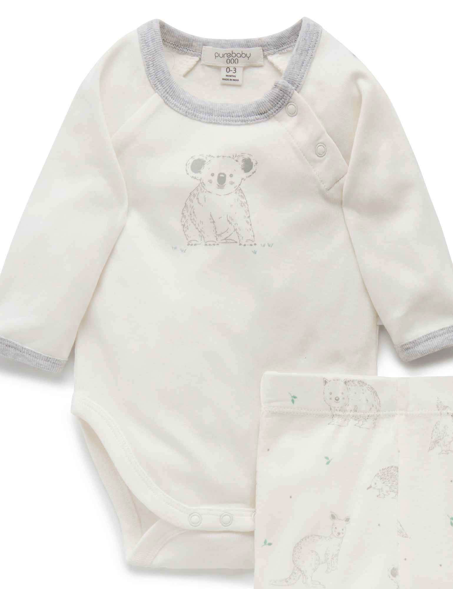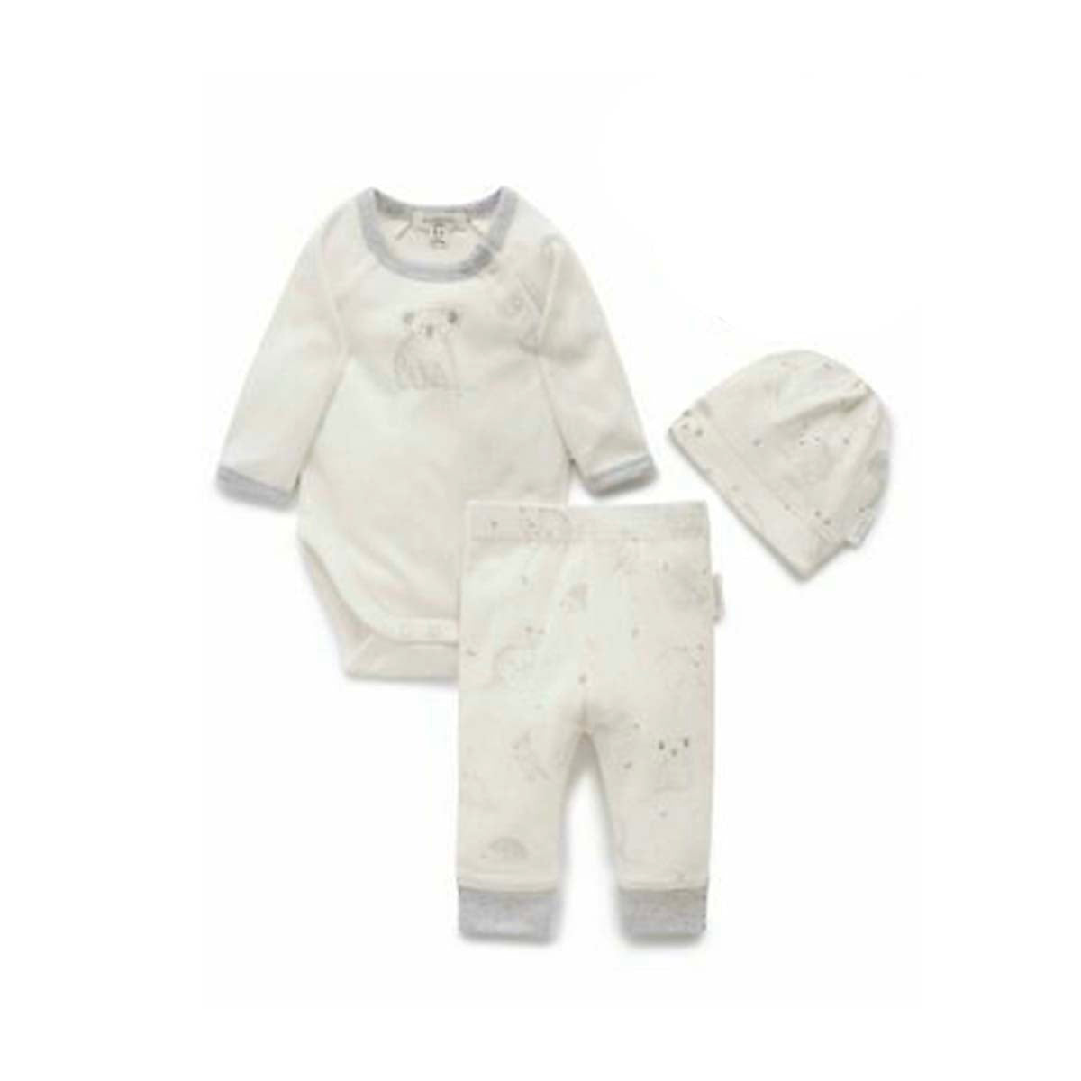 Purebaby Organic Cotton Baby 3 Pieces Gift Pack Pale Grey Australia Print