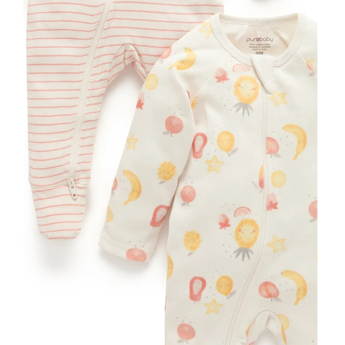2 Pack Organic Digital Zip Growsuit Purebaby Australia - Juicy Print