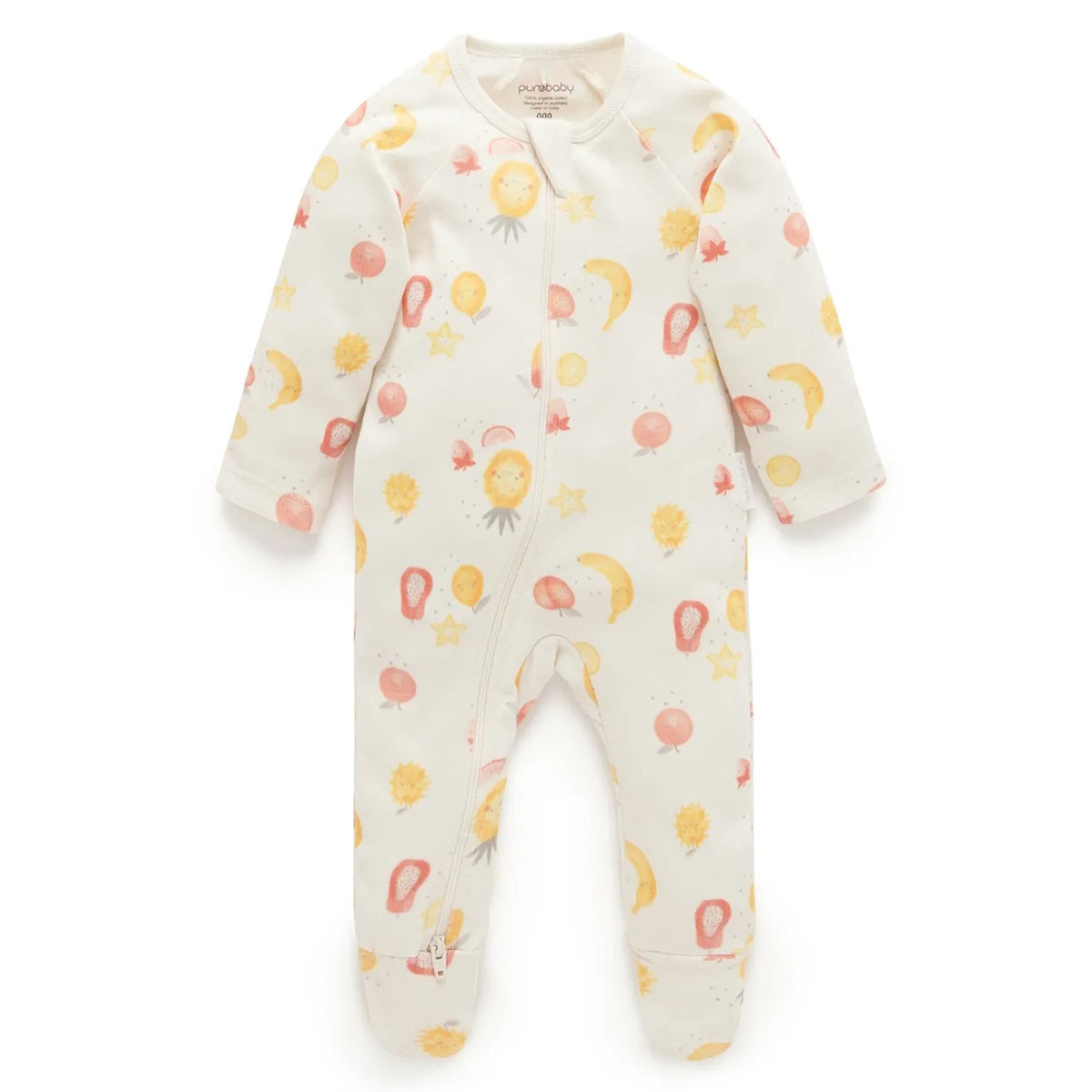 Our best selling Zip Growsuit, now available in limited edition prints! Our 2 Pack Zip Growsuit features one limited edition growsuit in a Purebaby illustrated print and a second striped growsuit.