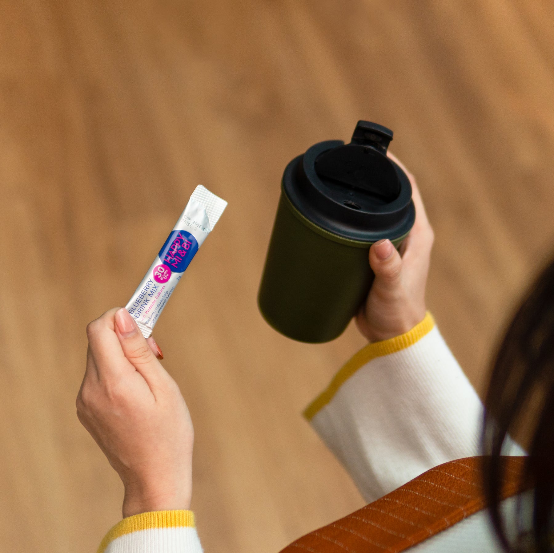 - HAPPY MI & BI™ may be taken directly or mixed in water or any beverage or sprinkled onto food.