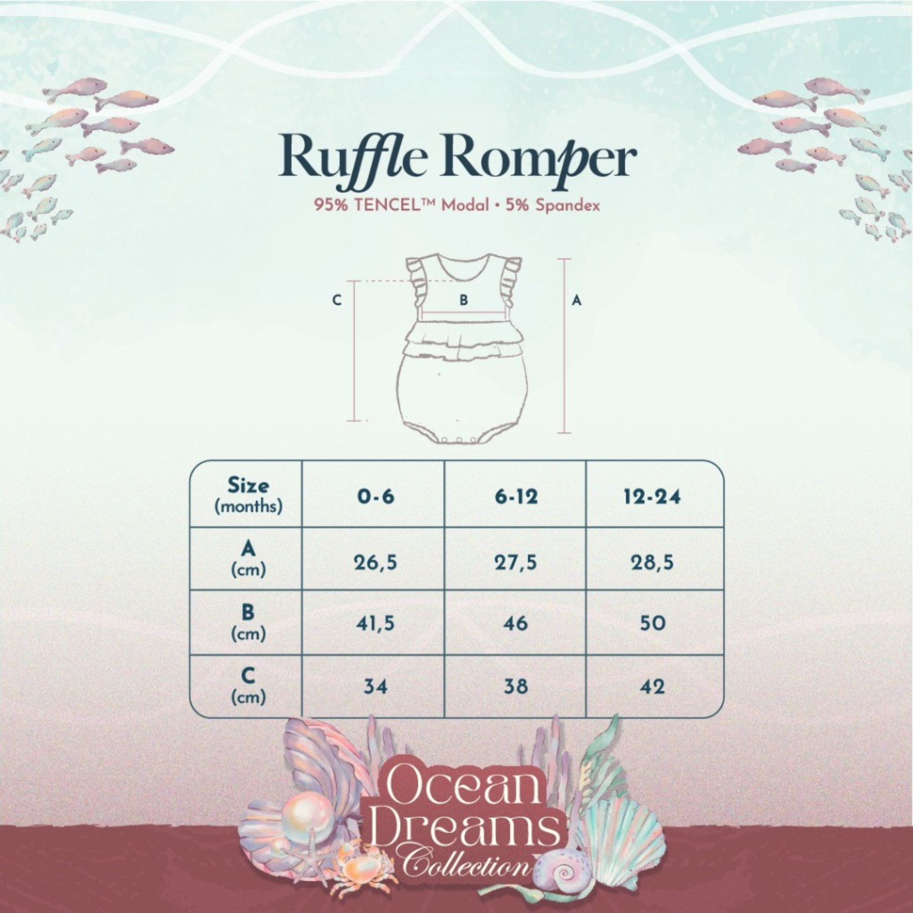 Featuring an elegant ruffle design and the calming Ocean Dreams in Ivory Pearl print, this romper blends charm with comfort. With its gentle, silky texture and natural moisture-wicking properties, it’s ideal for babies with sensitive or eczema-prone skin.