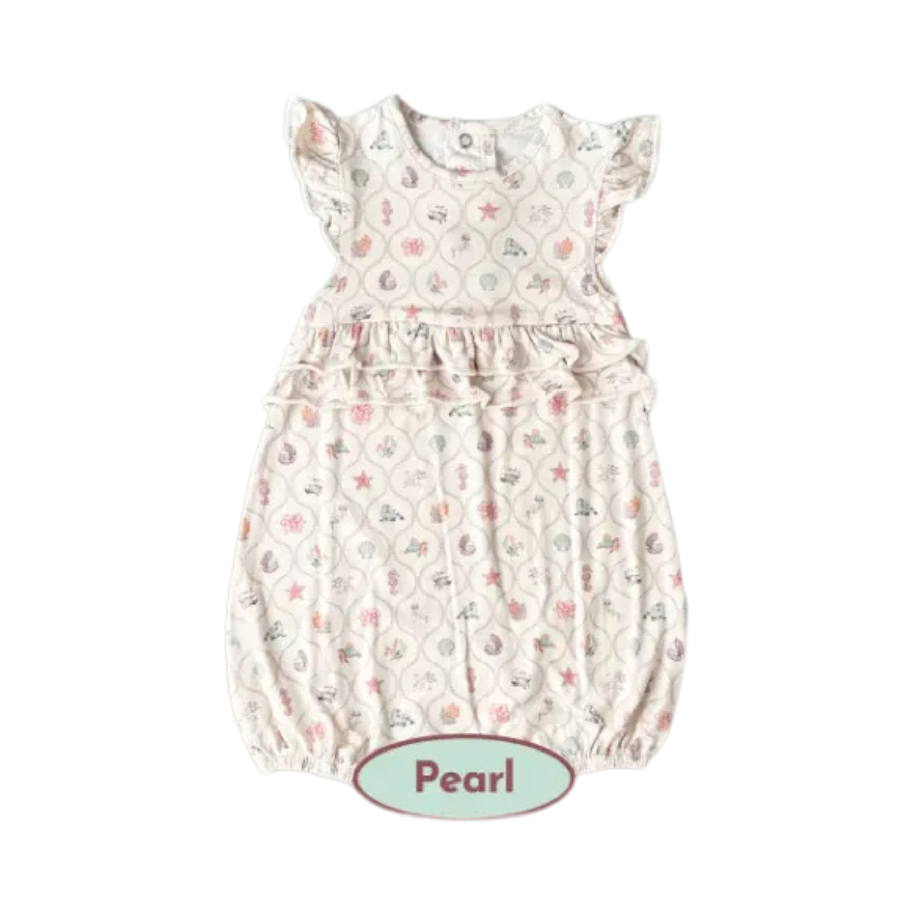 Koobicles Tencel Ocean Dreams In Ivory Pearl Ruffle Romper