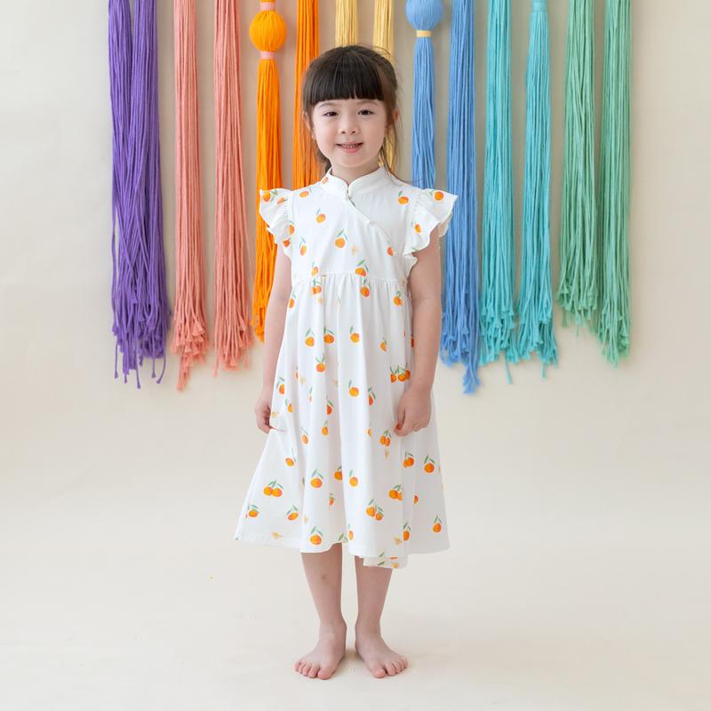 Le Petit Society Mandarin Orange Series - Girl's Cheongsam in Classic Orange Print