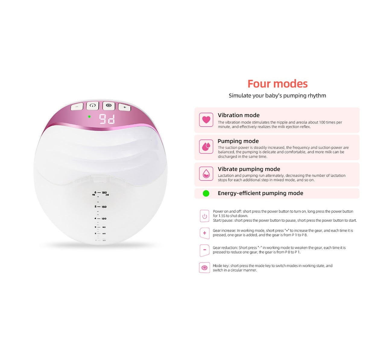 4 modes : Vibration / pumping / Vibration Pumping / Energy-efficient pumping (3-4hours)