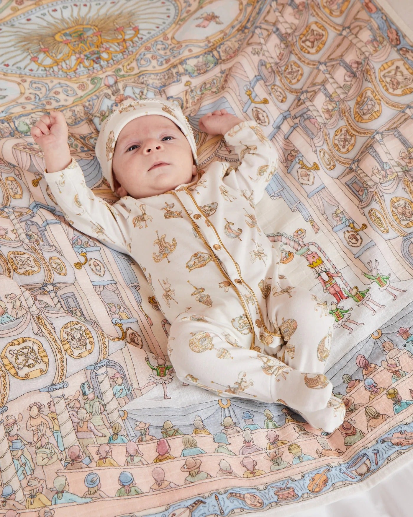 Atelier Choux Carré – Opéra is a multifunctional piece for elegant daily use — perfect as a swaddle, lightweight blanket, stroller accent, or decorative photo background.