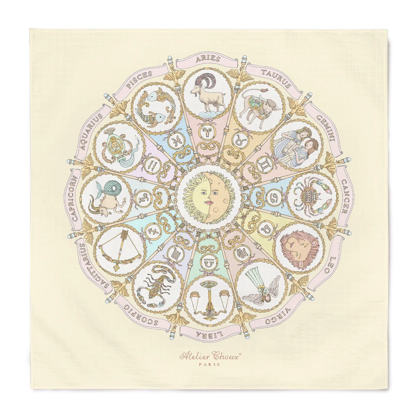 Each design features whimsical illustrations by Mattias Adolfsson, a Swedish artist known for his intricate, imaginative style. This exclusive print draws inspiration from astrological symbolism — offering a peaceful, Parisian twist on the stars.