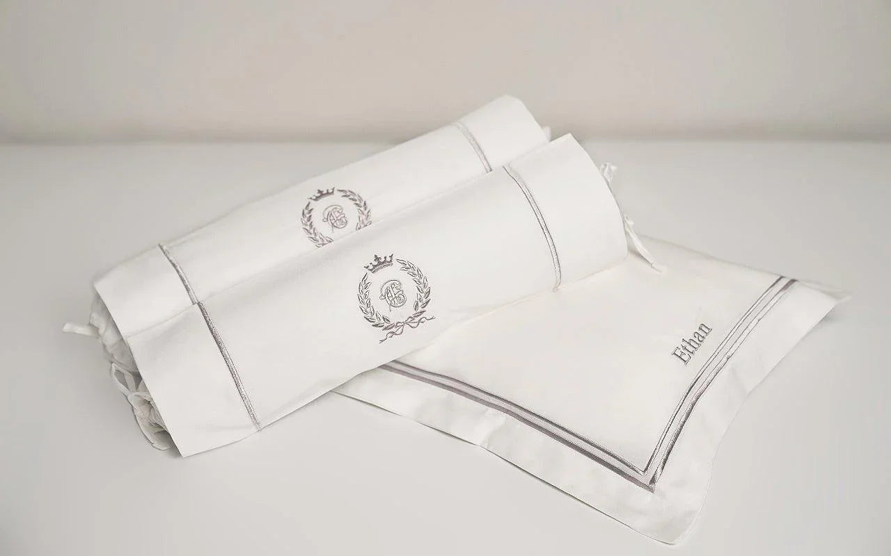 Indulge your bundle of joy with our lustrous pure Egyptian Cotton pillow and bolster. Our soft and fluffy pillow and bolster, enveloped in silky smooth Egyptian Cotton facilitates airflow and prevent overheating which can help your little one sleep comfortably for longer hours, all this whilst keeping them warm and snugly. Meticulously woven and gracefully enhanced by two rows of embroidery in pearl white, this piece of bedding will surely keep your loved ones comfortably in bed.