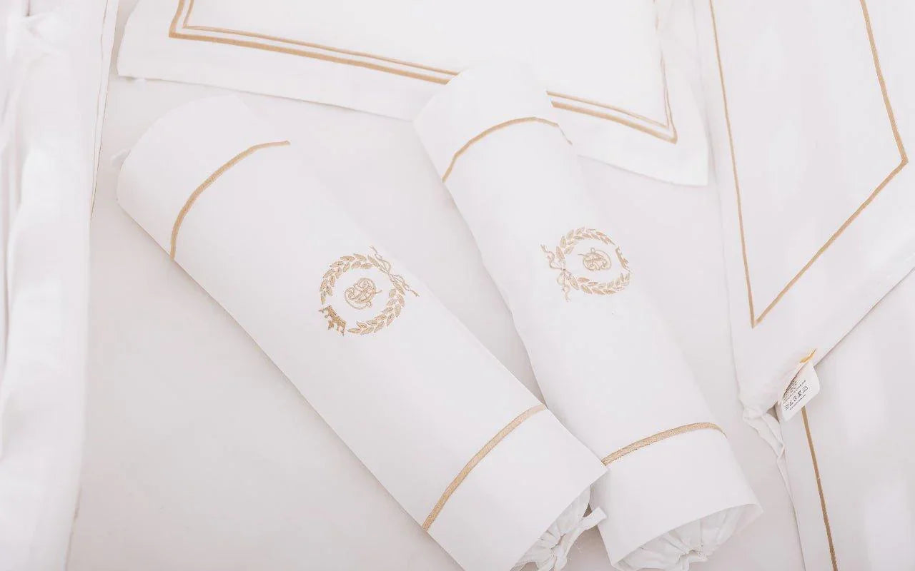 Indulge your bundle of joy with our lustrous pure Egyptian Cotton pillow and bolster. Our soft and fluffy pillow and bolster, enveloped in silky smooth Egyptian Cotton facilitates airflow and prevent overheating which can help your little one sleep comfortably for longer hours, all this whilst keeping them warm and snugly. Meticulously woven and gracefully enhanced by two rows of embroidery in pearl white, this piece of bedding will surely keep your loved ones comfortably in bed.   Â