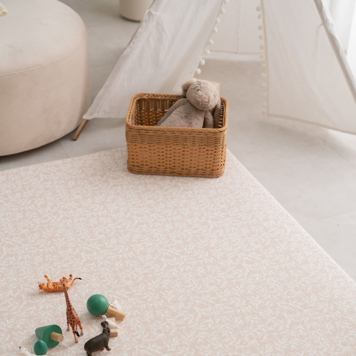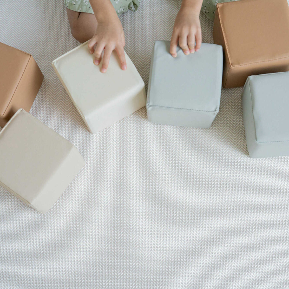 The mats are reversible, featuring two designs and colors that capture the essence of minimalist Japandi design. With thick, shock-absorbent cushioning, the mats provide a safe and comfortable surface for crawling, walking, and playing.