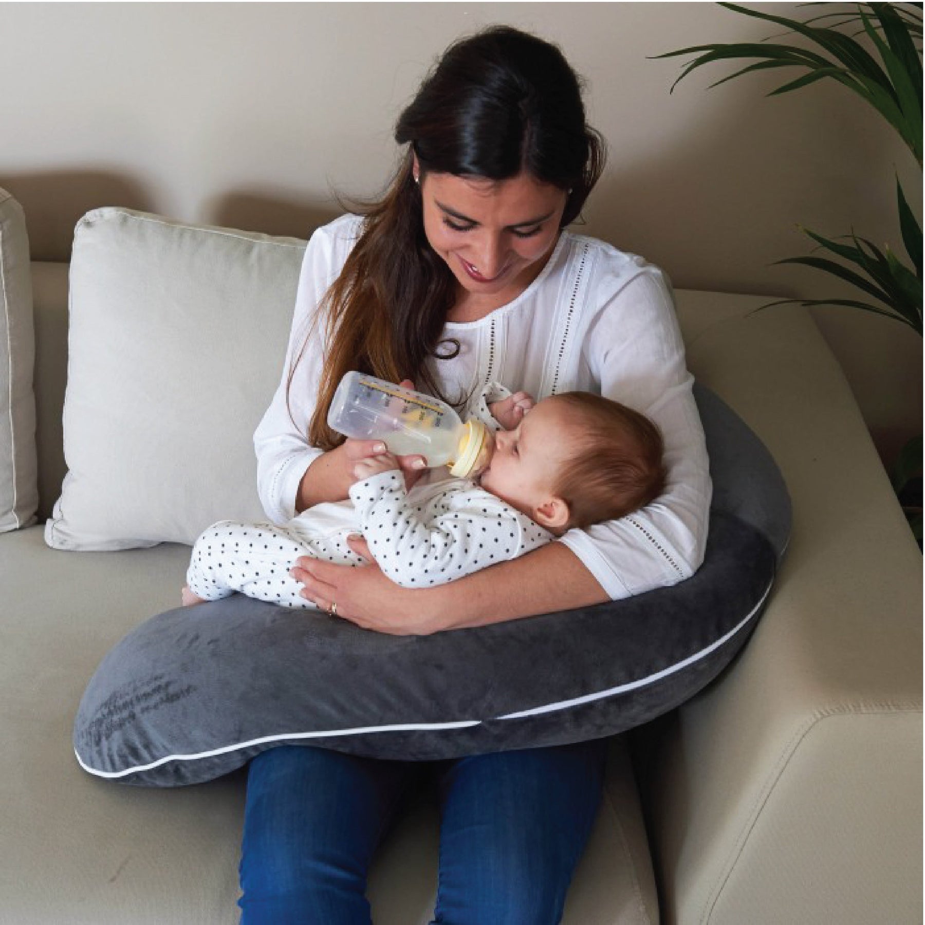 The leading maternity cushion, adjustable into a relaxing position for baby, with a harness to keep your child both comfortable and safe.