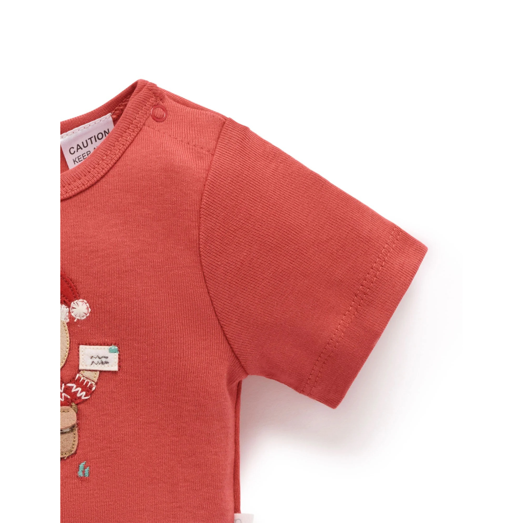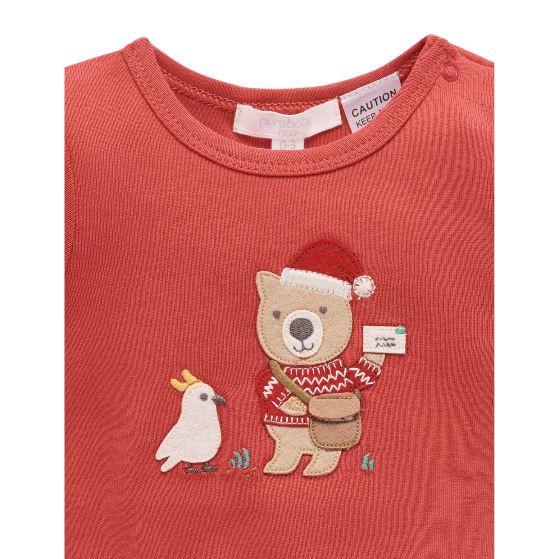 Purebaby Christmas Red Print Postie Santa Bodysuit Organic