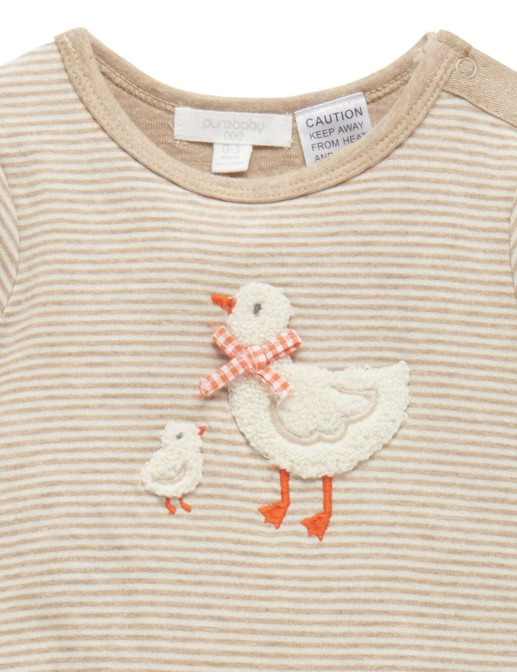 Keep your little one cosy and comfortable with the Purebaby Mini Stripe Biscuit Growsuit. Made from 100% certified organic cotton, this soft and breathable growsuit features subtle biscuit-toned mini stripes for a timeless and gentle look — perfect for everyday wear, playtime, or naps.