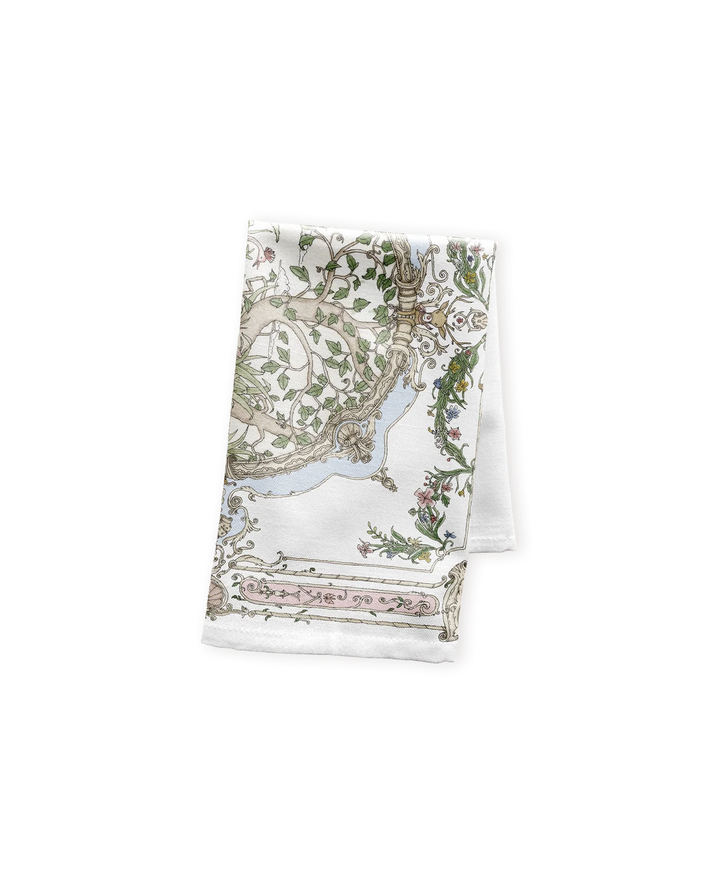 Each design features whimsical illustrations by Mattias Adolfsson, a Swedish artist known for his intricate, imaginative style. Featuring a still life rendering of an ornate pond scene with graceful swans, this Grand Carré offers a soft, breathable, and gentle embrace for your little one.