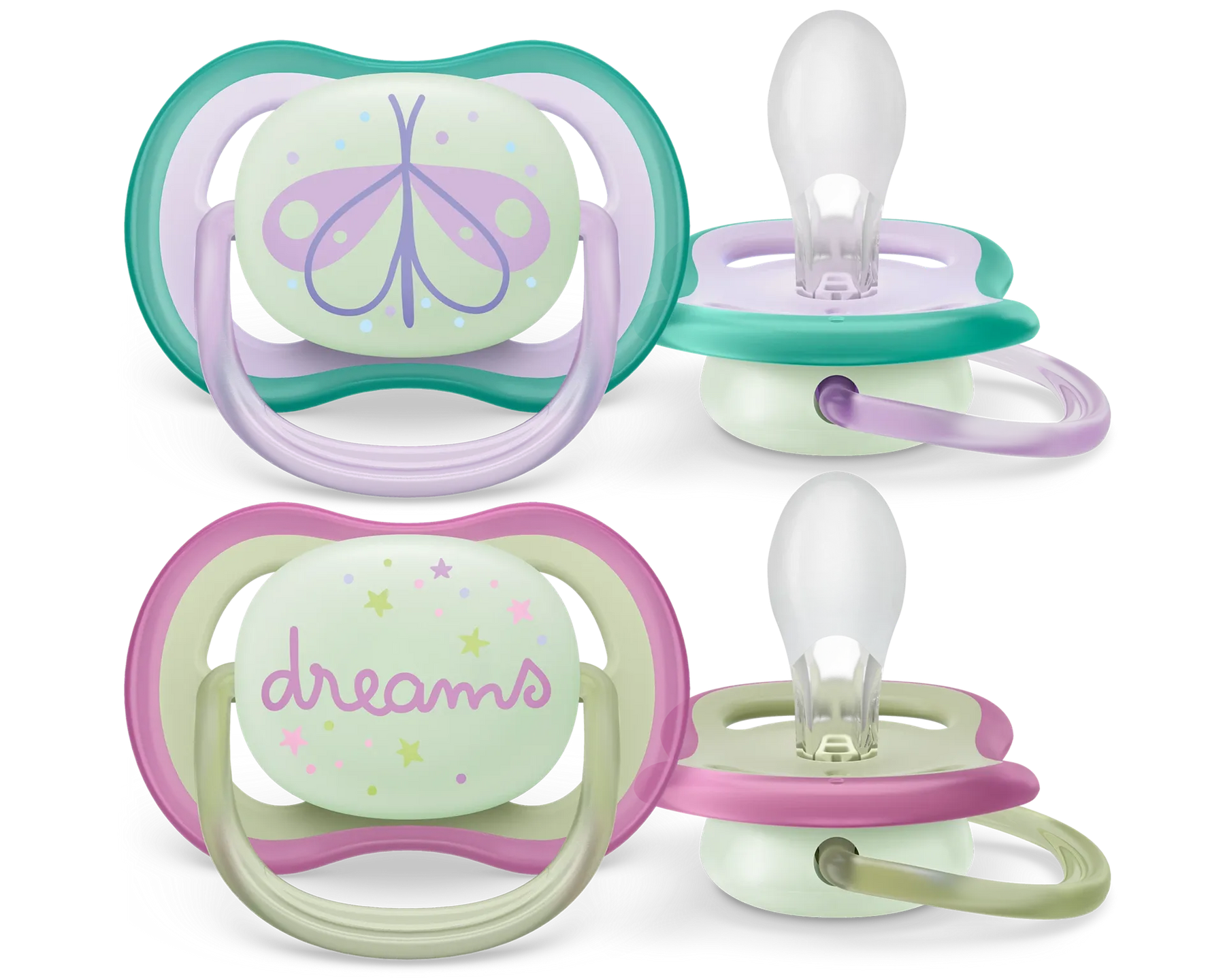 The Philips Avent Ultra Air Pacifier is designed to let your little one’s skin breathe while keeping them soothed and content. With extra-large air holes, it keeps your baby’s skin dry and comfortable, even during long hours of use. Its glow-in-the-dark button ensures you can find it easily at night, adding a touch of convenience to peaceful bedtime routines.