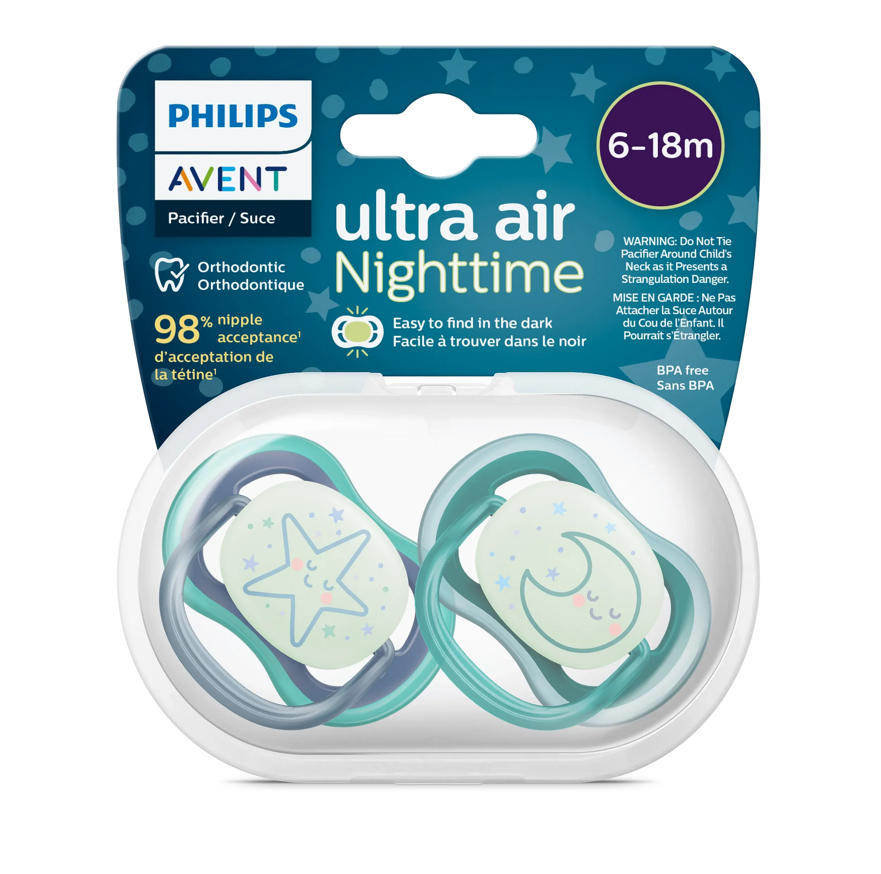 Give your baby soothing comfort and healthy skin with the Philips Avent Ultra Air Pacifier — gentle, breathable, and designed for peace of mind, even in the dark.