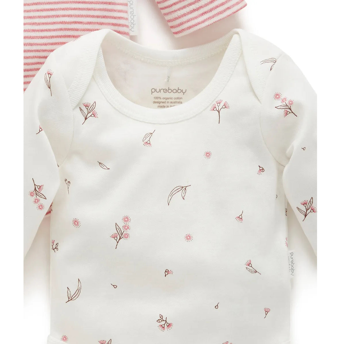 Purebaby Organic 2 Pack Easy Neck L/S Bodysuit - Vanilla Blossom Pack (3-6m)