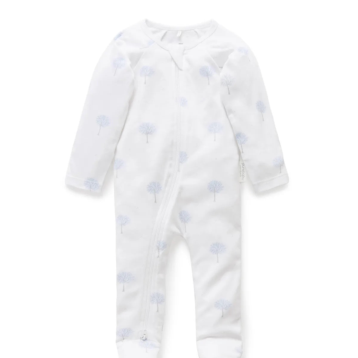 Purebaby Organic Zip Growsuit Pale Blue Tree (6-12m)