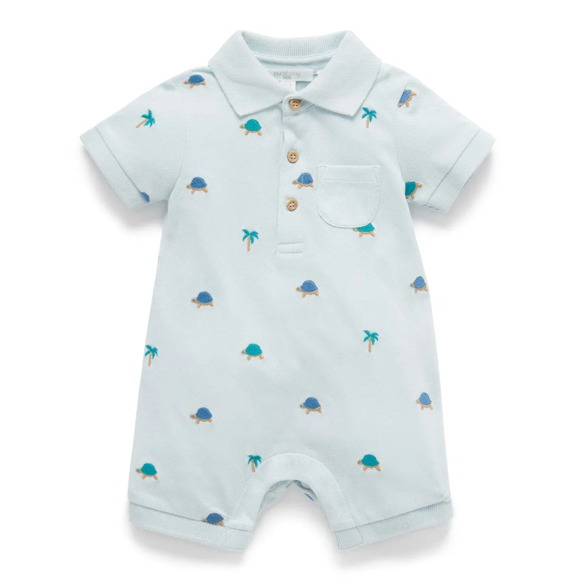 Purebaby Organic Polo Growsuit - Turtle Broderie (1Y)