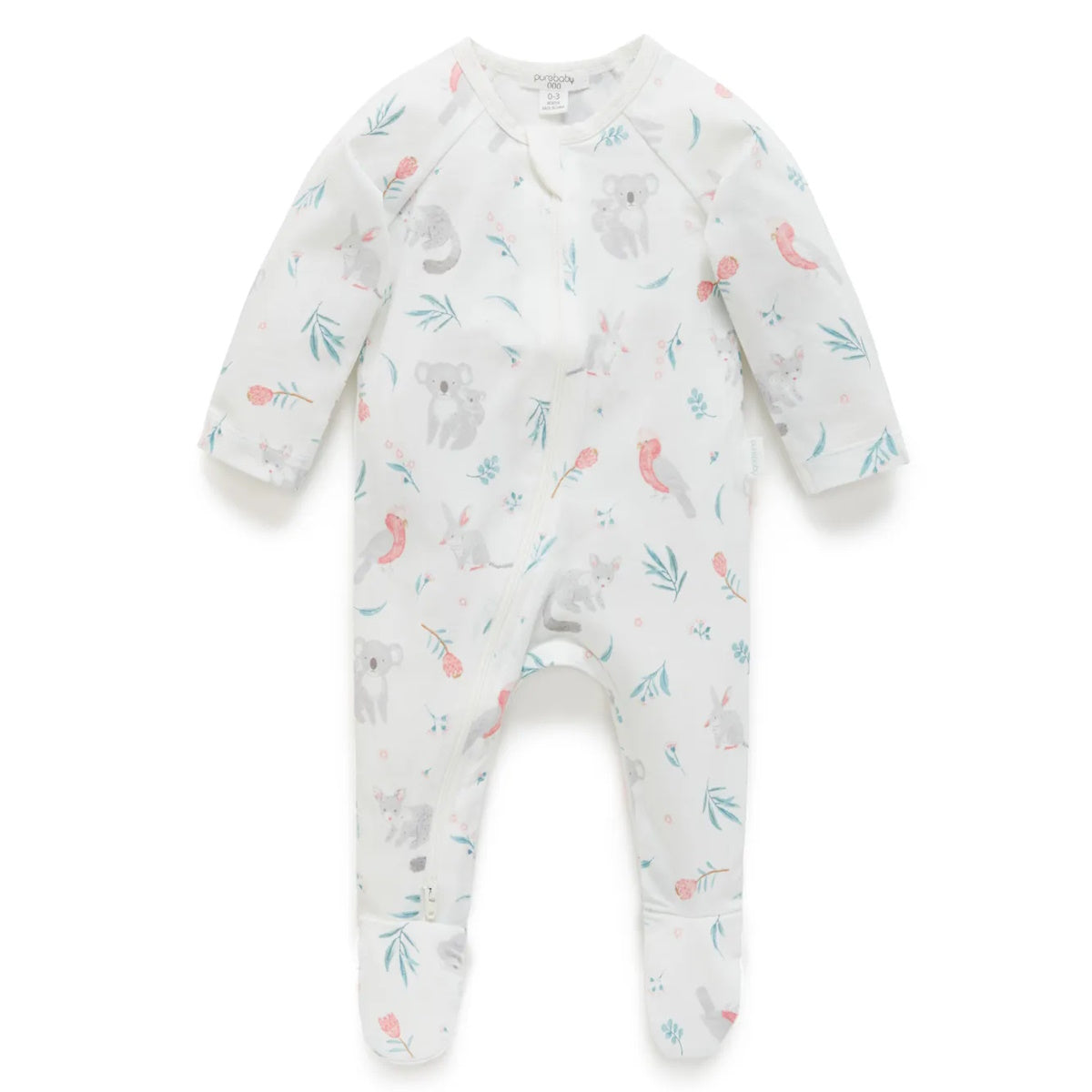 Purebaby Organic Zip Growsuit - Ws Blossom Friends (12-18m)