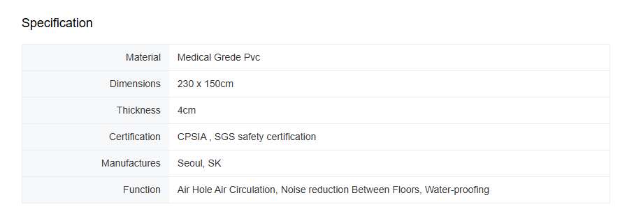 Dimensions: 230cm x150cm x 4cm Thick