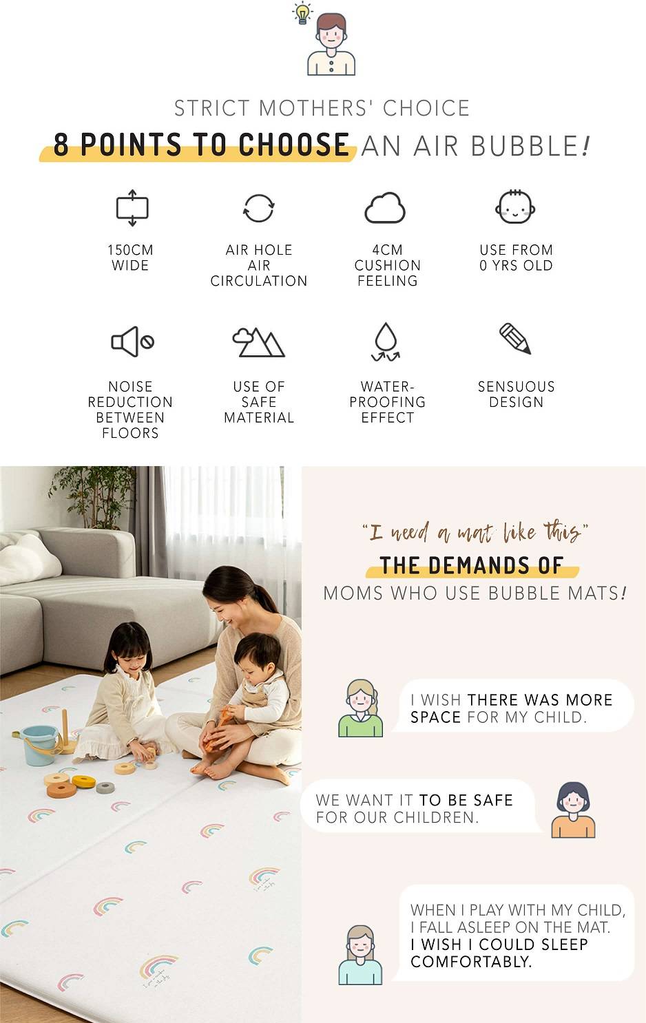 The air bubble provides optimal comfort even when lying down according to your weight, body pressure, and body shape.