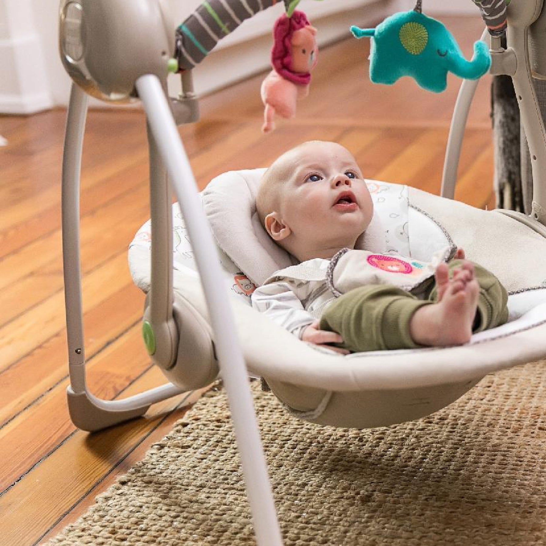 This comfort swing gives your baby a front row seat to your busy day. Made for moms and dads and babies alike, the Ingenuity swing keeps baby safe and secure when you need a second set of hands. The plush fabrics cradle baby in a snug embrace, while gentle music keeps a calm environment. Six speed options with TrueSpeed technology ensure sure your baby’s favorite swing speed stays consistent, even as he grows. The swing seat reclines for ultimate comfort. It’s tough to say who loves this swing more – parents or babies. Luckily for everyone, with its foldable and portable swing design, you can take this must-have almost anywhere you go.