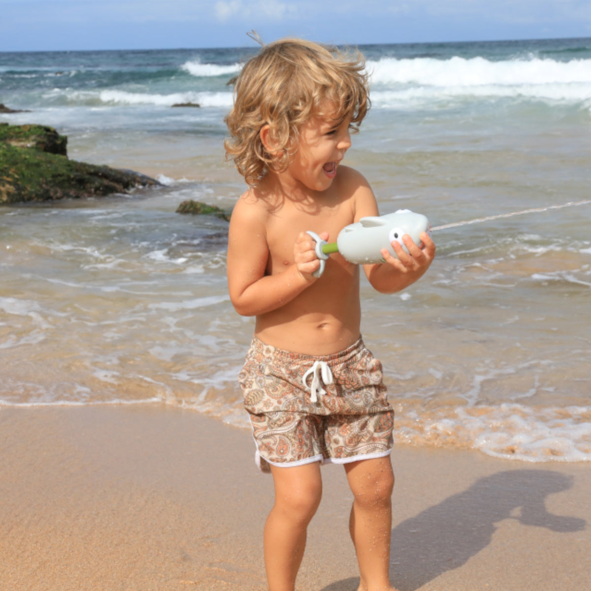 Bring on bath time with the Shark Animal Soaker! This playful shark has a goofy grin and likes to squirt anyone who crosses its path. With an easy grip for little hands, the shark's tail works as a hand pump to squirt water from its mouth! From the bath to the beach, the Shark Animal Soaker can be easily thrown in your bag, perfect for water play time no matter where the day takes you!